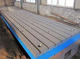鑄鐵平板又稱鑄鐵平臺(tái),外觀基本上是箱體式,工作面有長(zhǎng)方形、正方形、圓形等,材料為HT200-300,QT400-600,采用刮研工藝,工作面上可加工V形、T形、U形槽、燕尾槽、圓孔、長(zhǎng)孔等,是用于工件、設(shè)備檢測(cè)、劃線、裝配、焊接、組裝、鉚焊的平面基準(zhǔn)量具。