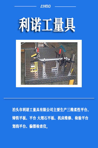 泊頭市利諾工量具有限公司加工、銷(xiāo)售、維修各種規(guī)格鑄鐵平臺(tái),鑄鐵平板,大理石平臺(tái),大理石平板,大理石構(gòu)件,檢驗(yàn)平臺(tái),檢驗(yàn)平板,劃線平臺(tái),劃線平板,焊接平臺(tái),焊接平板,三維柔性焊接平臺(tái),三維柔性焊接平板,裝配平臺(tái),裝配平板,試驗(yàn)臺(tái),機(jī)床工作臺(tái),墊鐵,鑄件,方箱,彎板,偏擺檢查儀,機(jī)床配附件,機(jī)床維修,機(jī)床修理